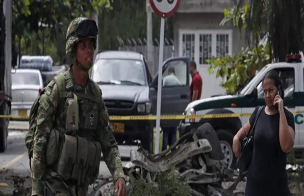 El ministro de Defensa, Pedro Sánchez, acusó del ataque al Estado Mayor Central (EMC), la mayor disidencia de las FARC, y dijo que este fue perpetrado «mediante un vehículo cargado con explosivos, lanzamiento de cilindros y ráfagas de fusil», lo que dejó dos civiles muertos y un policía herido.