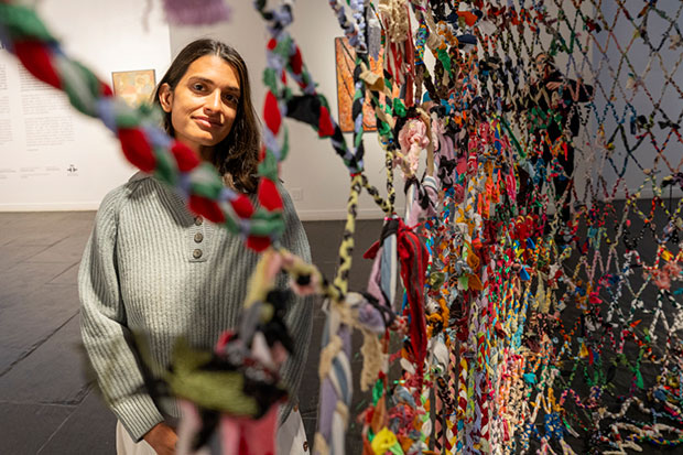 En ‘Aquel Amplex’ (Aquel abrazo), su primera exposición institucional, la artista visual y textil reúne unas trenzas tejidas colectivamente a lo largo de dos años en un proceso que “se siente como un abrazo de alguien que no está ahí, pero está presente”, según describe a EFE.