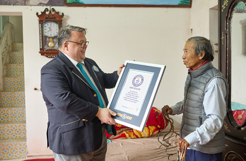 El editor en jefe de Guinness World Records, Craig Glenday, viajó a la provincia de Nam Định, Vietnam, a principios de 2025 para validar el registro.