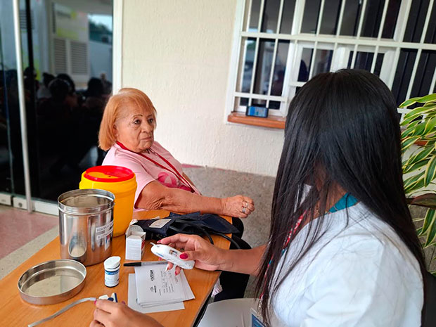 Durante las actividades, el equipo médico de la institución efectuó despistajes de hipertensión arterial, control de niveles de glucosa y medición de saturación de oxígeno. Esta iniciativa se complementó con una jornada de entrega de medicamentos, en la que más de 80 personas recibieron dotación de calcio, ácido fólico y complejos multivitamínicos para el refuerzo de sus tratamientos nutricionales.