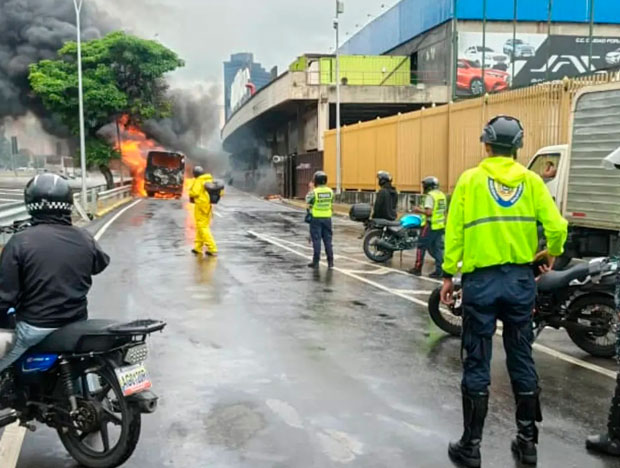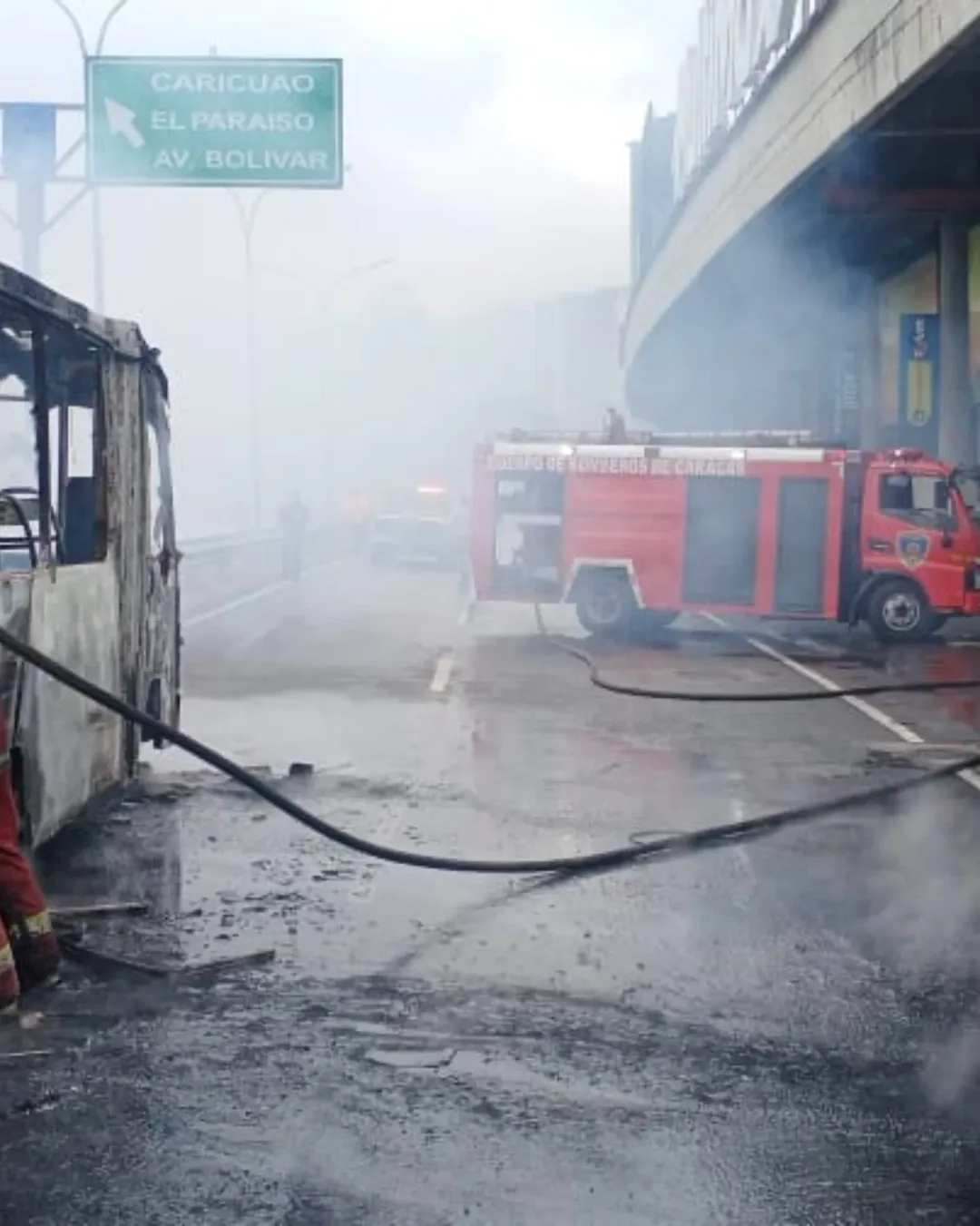 Por otro lado, un autobús se quemó sobre el puente de Los Flores de Catia, al parecer, el fuego se desprendió desde el motor y cubrió la cabina.