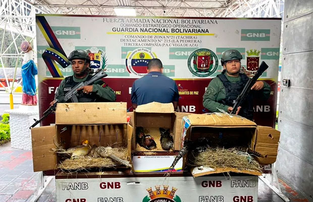 Efectivos de la Fuerza Armada Nacional Bolivariana (FANB) detectaron y decomisaron seis aves exóticas que ingresaron al territorio venezolano sin los permisos legales correspondientes. El procedimiento se llevó a cabo en el Punto de Atención al Ciudadano (PAC) Vega de Aza, bajo la jurisdicción de la Zona Operativa de Defensa Integral (ZODI) N°21 Táchira, informó La Prensa Táchira.