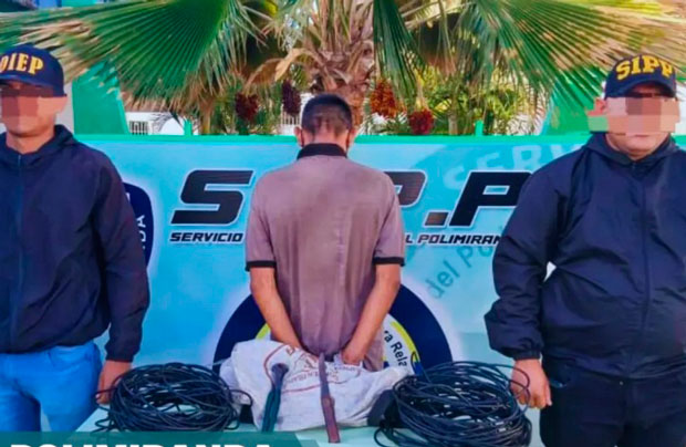 Como resultado de esta operación, se logró la aprehensión del ciudadano en el sector Bobare, donde le incautaron aproximadamente 60 metros de cableado eléctrico negro, una tenaza y un cuchillo.