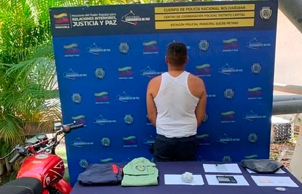 Funcionarios de la Policía Nacional Bolivariana (PNB), adscritos a la Estación Policial Municipal Sucre, aprehendieron en flagrancia a un ciudadano en el sector La Alcabala de la parroquia Petare, por los presuntos delitos de usurpación de funciones, posesión y distribución de sustancias estupefacientes y psicotrópicas.