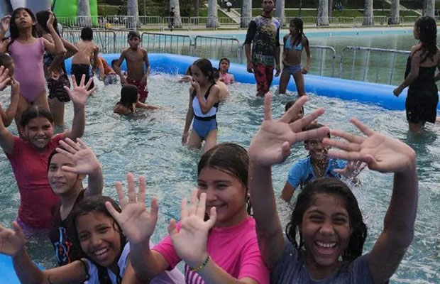 “Carnavales Comunitarios por la Paz 2026, se lleva a cabo en todas las parroquias, comunas, plazas… Los niños gozando con caramelos, juegos, piscinas, colchones inflables… Estamos atendiendo a la niñez y la familia”, destacó la alcaldesa.
