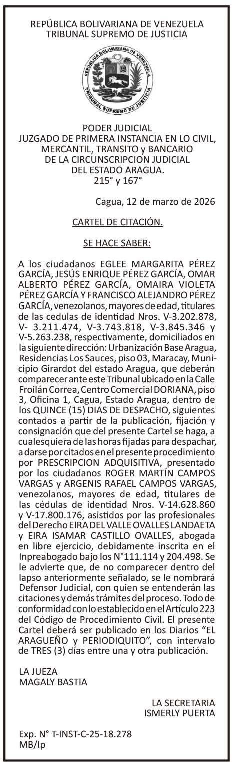 Edictos y carteles CARTEL DE CITACIÓN Por El Aragueño - abril 6, 2026 0 FacebookXPinterestWhatsAppLinkedinEmailImpresiónTelegramCopy URL