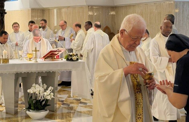 «Ahora no es el momento de detenernos en su vida cotidiana, que consistía en trabajo, reuniones y oración en la pequeña capilla del segundo piso (la capilla privada de Bergoglio). Estoy seguro de que el Papa Francisco le tomó cariño a esta casa, y nosotros le tomamos cariño a él. Tal permanece el espíritu de nuestras oraciones de sufragio en este primer año de su fallecimiento. Todavía lo sentimos cerca», dijo el cardenal Angelo Acerbi en la homilía leída por el Arzobispo Luigi Travaglino, nuncio apostólico que presidió la Santa Misa en la Casa Santa Marta en el primer aniversario del fallecimiento del Papa Francisco.
