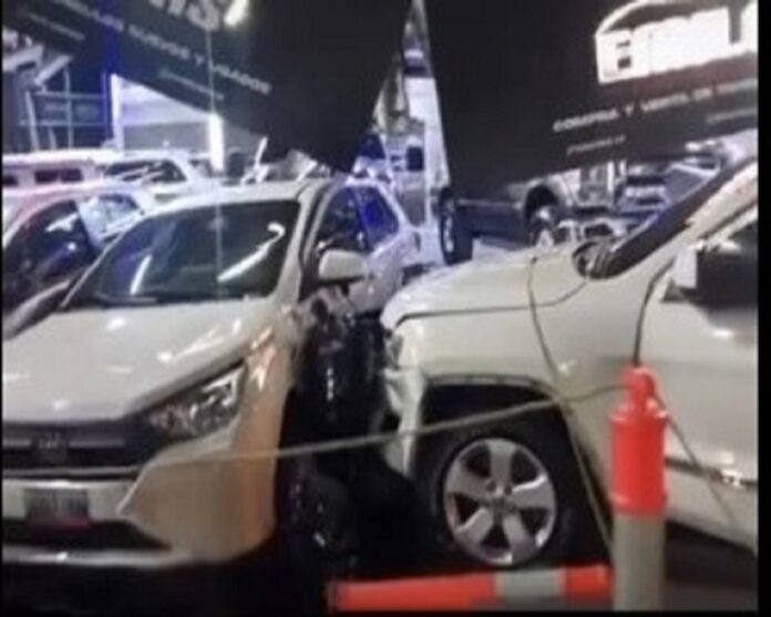 La noche del miércoles 18 de febrero, se registró un siniestro vial al norte de la ciudad de Valencia, específicamente en la Redoma de El Viñedo, cuando el conductor de una camioneta Jeep Grand Cherokee, chocó contra la exhibición de vehículos.