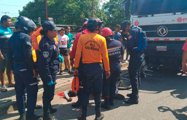De acuerdo al informe oficial, el deceso se registró aproximadamente a las 10:34 de la mañana, cuando un vehículo de carga pesada perteneciente a PDVSA de placa A07EP2P, conducido por Edgar Martilla de 44 años, colisionó contra un vehículo tipo bicicleta dejando comos saldo a un fallecido.