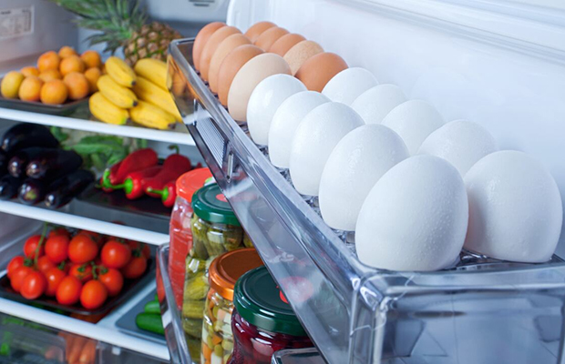 - Huevos: aunque muchas heladeras incluyen hueveras en la puerta, esta ubicación no mantiene la temperatura adecuada. Los huevos necesitan frío continuo para conservar su humedad y evitar la entrada de bacterias a través de la cáscara. La American Egg Board aconseja almacenarlos en su empaque original, en una repisa interna.