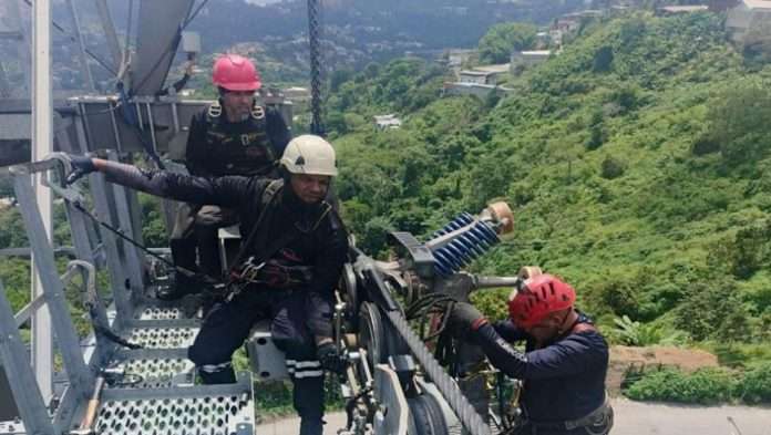 La clase trabajadora de los Sistemas por Cable del Metro de Caracas continúa trabajando en el proceso de rehabilitación integral del sistema MetroCable Mariche, contando con el apoyo de la Corporación Juntos Todo es Posible, como parte de la segunda fase del Plan Metro «¡Se mueve contigo!».