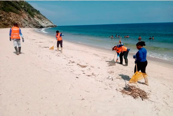 Asimismo, se realizaron labores de mantenimiento en la emblemática parroquia, específicamente en la Bahía de Chuao, para ofrecer a turistas y visitantes lugares limpios y agradables donde puedan disfrutar de su estadía.