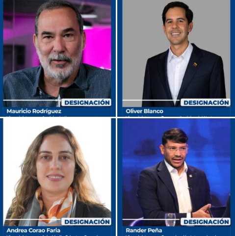 La presidenta encargada también anunció que Rander Peña será el nuevo viceministro para Comunicación Internacional, cargo que ocupaba anteriormente Camilla Fabri de Saab, a quien agradeció por sus funciones al frente de este despacho.