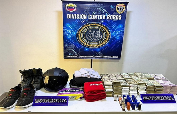 Los funcionarios incautaron como evidencias, dos motos usadas, un vehículo, celulares, dos motos compradas con el dinero robado, más de 380 mil dólares en efectivo y, más de 290 mil bolívares en efectivo.
