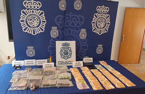En la intervención se incautó una embarcación neumática equipada con dos motores, localizada a unos cinco kilómetros de la costa de la ciudad, y en ella viajaban siete personas y se transportaban bidones de gasolina y una carga de 1.922 kilos de hachís.