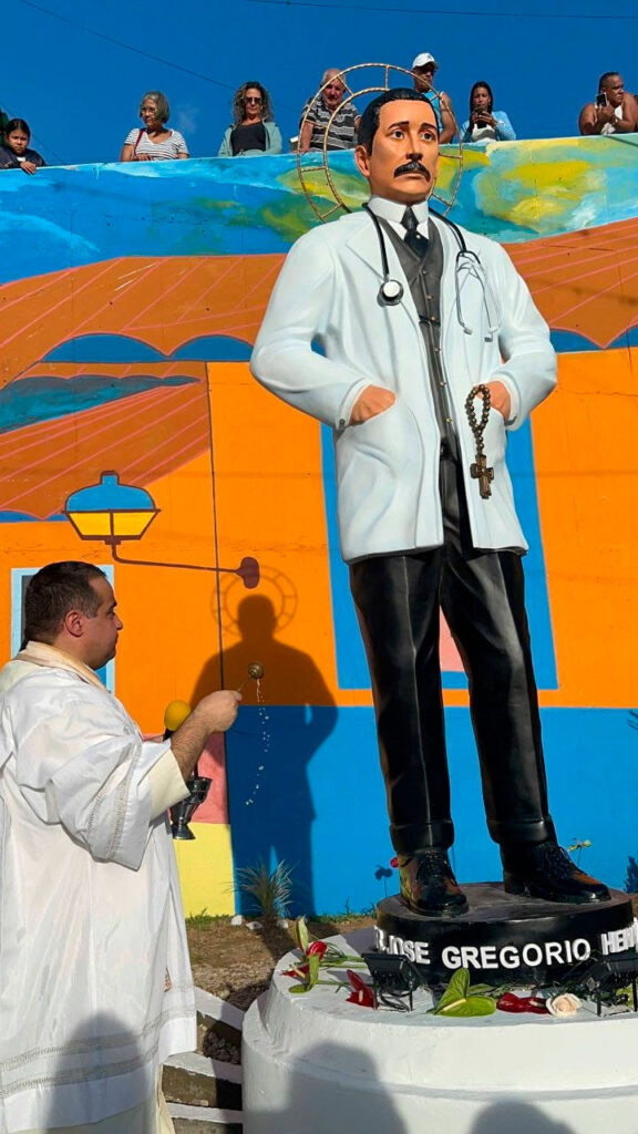 “Esta comunidad que lleva su epónimo, ahora tendrá en su entrada a esta hermosa esfinge, que nos llena a todas y a todos, quienes abrazamos con mucha fe, con mucha esperanza a nuestro santo doctor José Gregorio Hernández”, añadió el mandatario local, explicando que fue una petición de la comunidad.