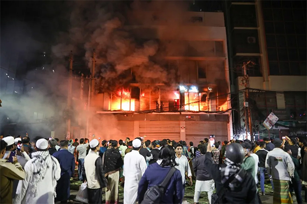 El ataque se produce en medio de la fuerte agitación desatada tras la muerte de Hadi, quien falleció el jueves en un hospital de Singapur tras sucumbir a las heridas sufridas por un disparo en la cabeza el pasado 12 de diciembre en Daca, cuando fue atacado mientras viajaba en un rickshaw.