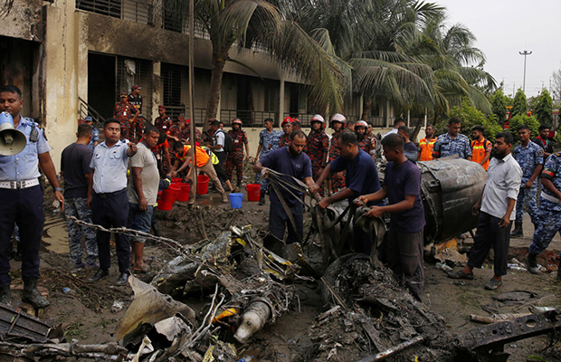Según las primeras evidencias señaladas por las autoridades, el aparato sufrió un “fallo mecánica” a los pocos minutos de comenzar su vuelo, y aunque el piloto trató de desviar la trayectoria para evitar una tragedia mayor, terminó estrellándose contra un edificio de dos plantas del campus de la Escuela y Colegio Milestone, al norte de Daca.