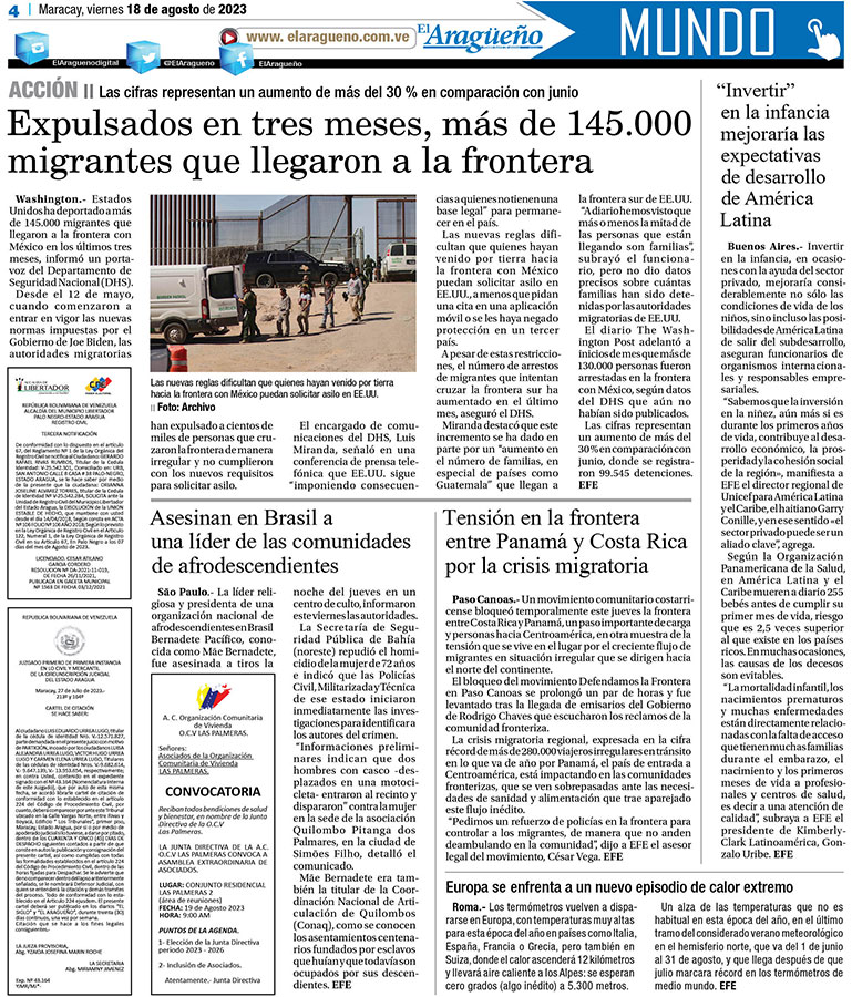 Portada Edición vespertina Por El Aragueño - agosto 18, 2023 0 FacebookXPinterestWhatsAppLinkedinEmailImpresiónTelegramCopy URL