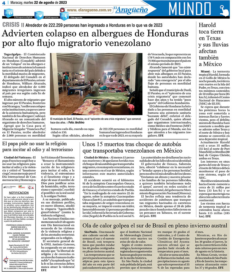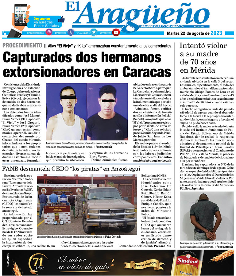 Portada Edición vespertina Por El Aragueño - agosto 22, 2023 0 FacebookXPinterestWhatsAppLinkedinEmailImpresiónTelegramCopy URL
