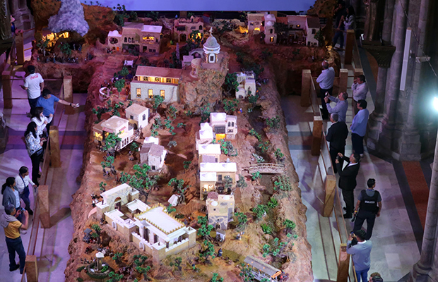Setenta días tardó la instalación del pesebre en la nave central de la Basílica, que se levanta majestuosa en lo alto del centro histórico de Quito, donde cientos de fieles y turistas visitan el pesebre al que la Fundación Padre Jimmy Arias cataloga como “el más grande de Sudamérica”.