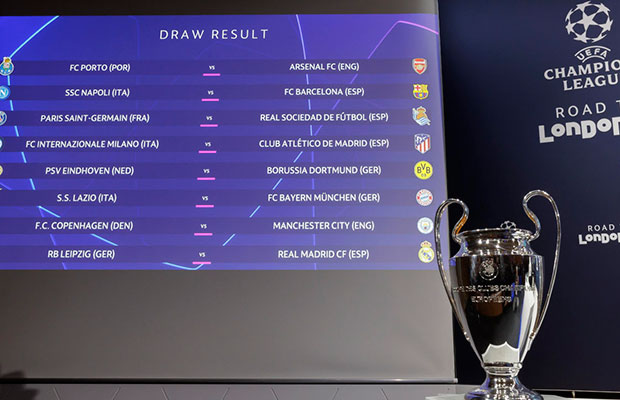 Resultado del sorteo de emparejamientos de los octavos de final de la Liga de Campeones de Europa, que se ha celebrado este lunes en la sede de la UEFA en Nyon.