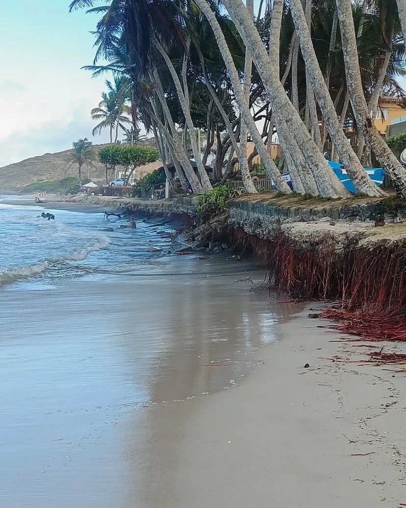 Entre las posibles medidas de mitigación mencionadas se encuentran estrategias de protección costera blanda, como la colocación de barreras temporales con sacos de arena, rocas o estructuras de contención, que podrían ayudar a disipar la energía del oleaje y reducir la erosión del suelo, evitando así la caída de más cocoteros en esta importante zona turística del estado Nueva Esparta.