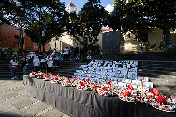 Los familiares de los presos políticos instalaron este domingo 14 de diciembre, la «mesa de los que esperan», en Caracas, como una forma de protesta para exigir la liberación de estas personas antes de la celebración de la Navidad.