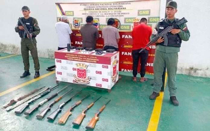 La información fue detallada por el comandante del Comando Estratégico Operacional de la Fuerza Armada Nacional Bolivariana (Ceofanb), Domingo Hernández Lárez, a través de sus redes sociales, donde indicó que estas personas identificadas como Emilio Segundo Castillo González, Yonathan Iván González, Ely Saúl González Ipuana y Leonel Enrique Ramírez fueron aprehendidas en labores de patrullaje que se llevaron a cabo en el sector San Andrés, parroquia José Ramón Yépez, municipio Jesús Enrique Lossada.