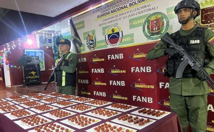 Funcionarios de la Fuerza Armada Nacional Bolivariana (Fanb), lograron incautar un total de 24, 160 kilogramos de cocaína, distribuidos en 559 envoltorios que se encontraban ocultos en dos sacos de alimentos para caninos, cargamento que pretendían ser enviados, a través de una empresa de recepción ZOOM, ubicada en el sector Puente Real, municipio San Cristóbal.