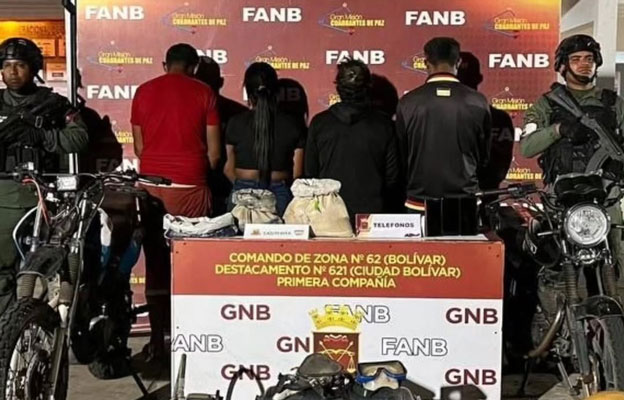 La Guardia Nacional Bolivariana (GNB), informó que fueron detenidos cuatro sujetos en el estado Bolívar por su presunta vinculación con la minería ilegal.