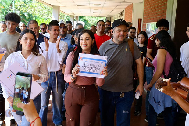 Finalmente la máxima autoridad regional extendió la invitación a la comunidad universitaria de participar activamente en la Primera Consulta Universitaria Aragüeña que se llevará a cabo el 28 de noviembre en cinco universidades del estado, en el que siete proyectos serán sometidos a votación y los ganadores serán materializados con el objetivo de brindar bienestar a los estudiantes.