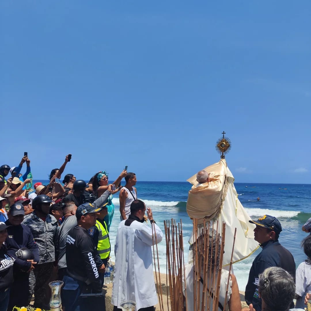 Frente al Mar Caribe, se realizó el acto central de bendición de las aguas, elevando plegarias especiales por la seguridad de los pescadores locales, quienes encuentran en «la madre del mundo» su principal sustento económico y alimentario.