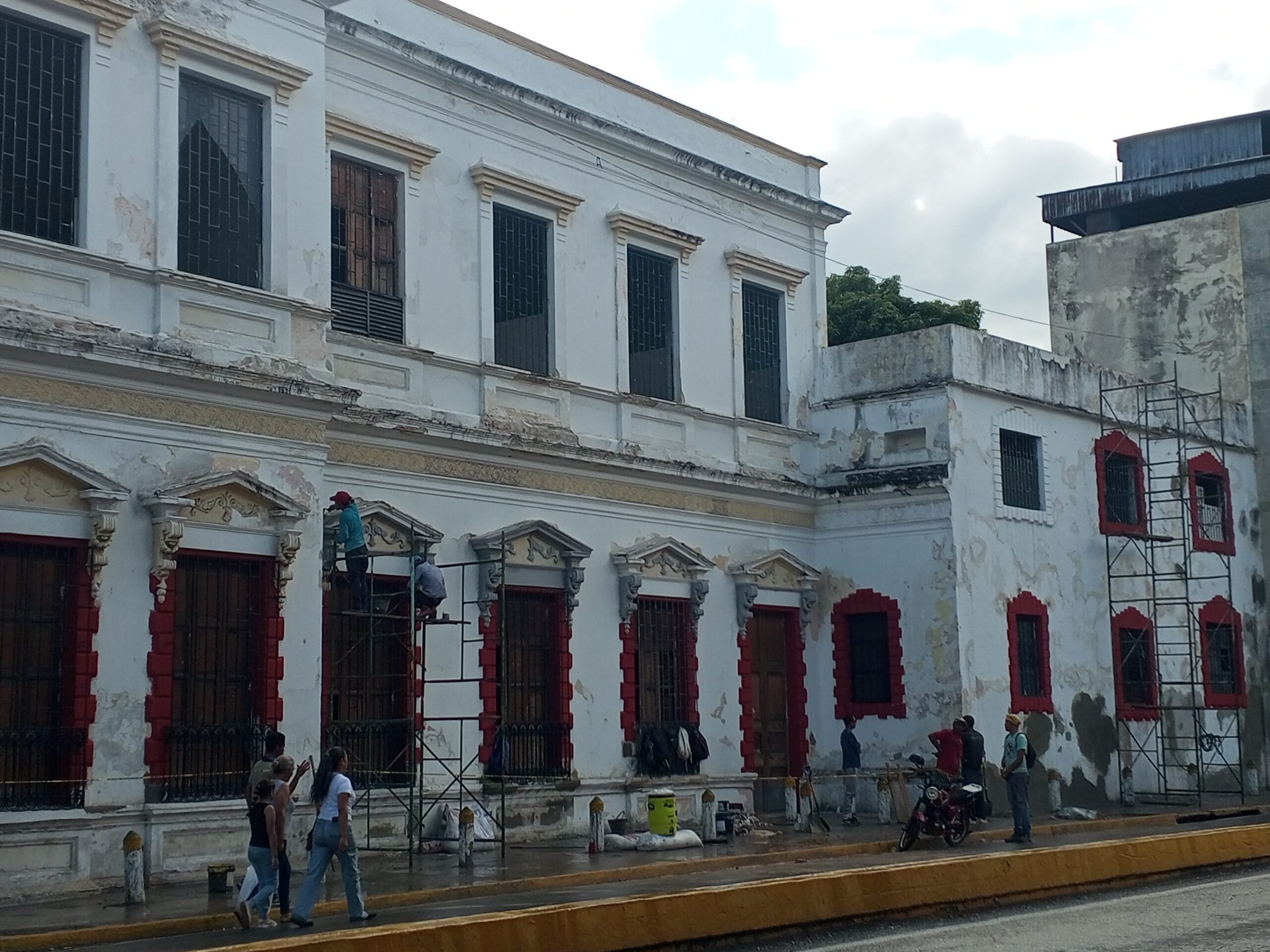 Estos trabajos incluyen, resanar las paredes y acondicionamiento de testigos, además de hacer el recubrimiento con esmalte a base de agua de lo que son todos los protectores de la ventana, al igual que el recubrimiento con pintura de caucho de todo el exterior del fronti del Palacio.