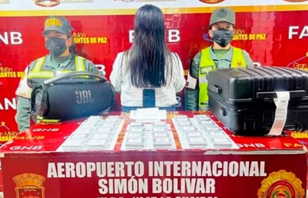 De acuerdo con una publicación del Ministerio Público (MP) en Instagram, la mujer identificada como Leidy Mora, quedó detenida por efectivos de la Fuerza Armada Nacional Bolivariana (FANB) en el Aeropuerto Internacional de Maiquetía Simón Bolívar de La Guaira, con 32 envoltorios de presunta cocaína que pretendía traficar hacia Madrid, España.