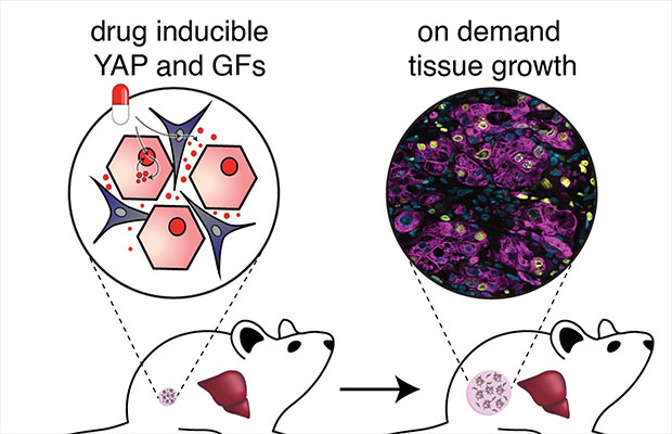 Para convertir este hallazgo en una terapia segura, utilizaron herramientas de biología sintética para diseñar dos componentes clave en el tejido 3D, los hepatocitos (modificados para expresar la proteína YAP no degradable) y las células de fibroblastos (modificados para secretar los cuatro factores de crecimiento necesario).