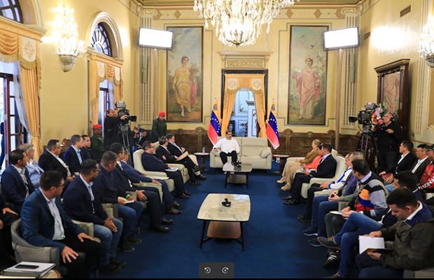 El presidente de la República, Nicolás Maduro, recibió este miércoles 13 de agosto, a los alcaldes opositores en el Salón Simón Bolívar, en el Palacio de Miraflores, para sostener una reunión trabajo bajo los principios del respeto mutuo y labor en conjunto.