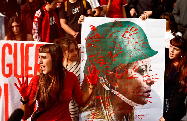En Milán, la marcha estudiantil en Milán que congregó a 10.000 personas, según los organizadores, se convocó bajo el eslogan “contra la escuela del genocidio” y llegó a la Plaza della Scala, donde los manifestantes colgaron una gran pancarta con el lema “Palestina libre”.
