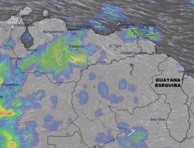 Durante la tarde y noche, se prevé desarrollo nuboso con lluvias o chubascos y descargas eléctricas ocasionales en Bolívar, Amazonas, Nororiente, Centro Norte Costero, Llanos Centrales, Occidentales, Centro Occidente, los Andes y Zulia.