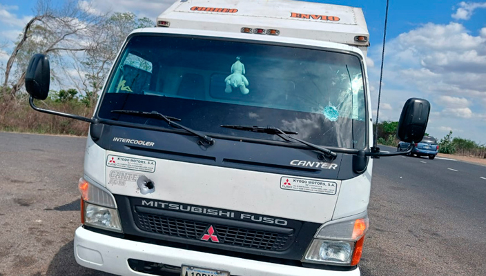 Según testimonios, los sujetos aprovecharon que el chofer redujo la velocidad para sortear un área de baches de la carretera y procedieron a efectuar disparos contra el parabrisas y la parte delantera del vehículo. El conductor logró escapar de la situación sin resultar herido y sin que el robo se concretara, pero con evidencias del ataque en en su unidad.