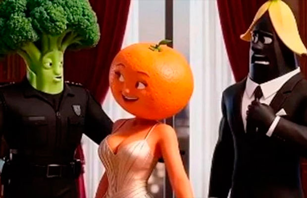 En una de las producciones más populares, el galancito es Banana Negra. Tal como vemos en la imagen a continuación de este párrafo, esa fruta humanoide lucha por el amor de Chica Naranja, que también pretende un brócoli que tiene su propio rostro… y también sentimientos.