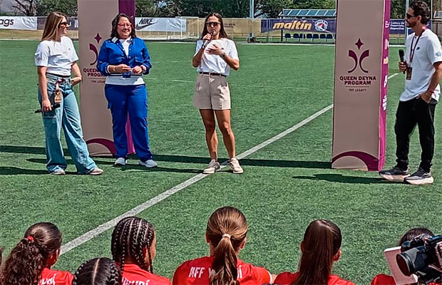 Acompañada por Alejandra Blasco, directora de la fundación Queen Deyna Legacy, Deyna Castellanos @deynacastellanos compartió con la prensa los logros que han alcanzando hasta ahora, destacando la entrega de más de 50 becas otorgadas, la entrega de insumos y materiales deportivos a diversas academias de fútbol femenino y el compromiso de continuar con esta labor que solo busca impulsar la disciplina, su desarrollo y sobre todo, cumplir sueños.