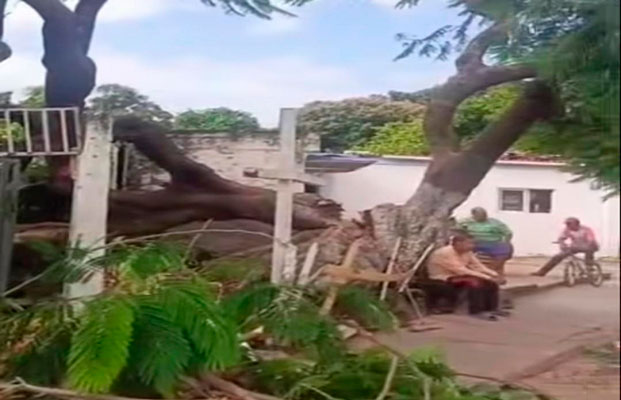 Al sitio acudieron los Bomberos de Valencia para realizar labores de cortar las ramificaciones del árbol que quedaron sobre la vivienda, así como de un vehículo que se encontraba dentro del estacionamiento de la vivienda.