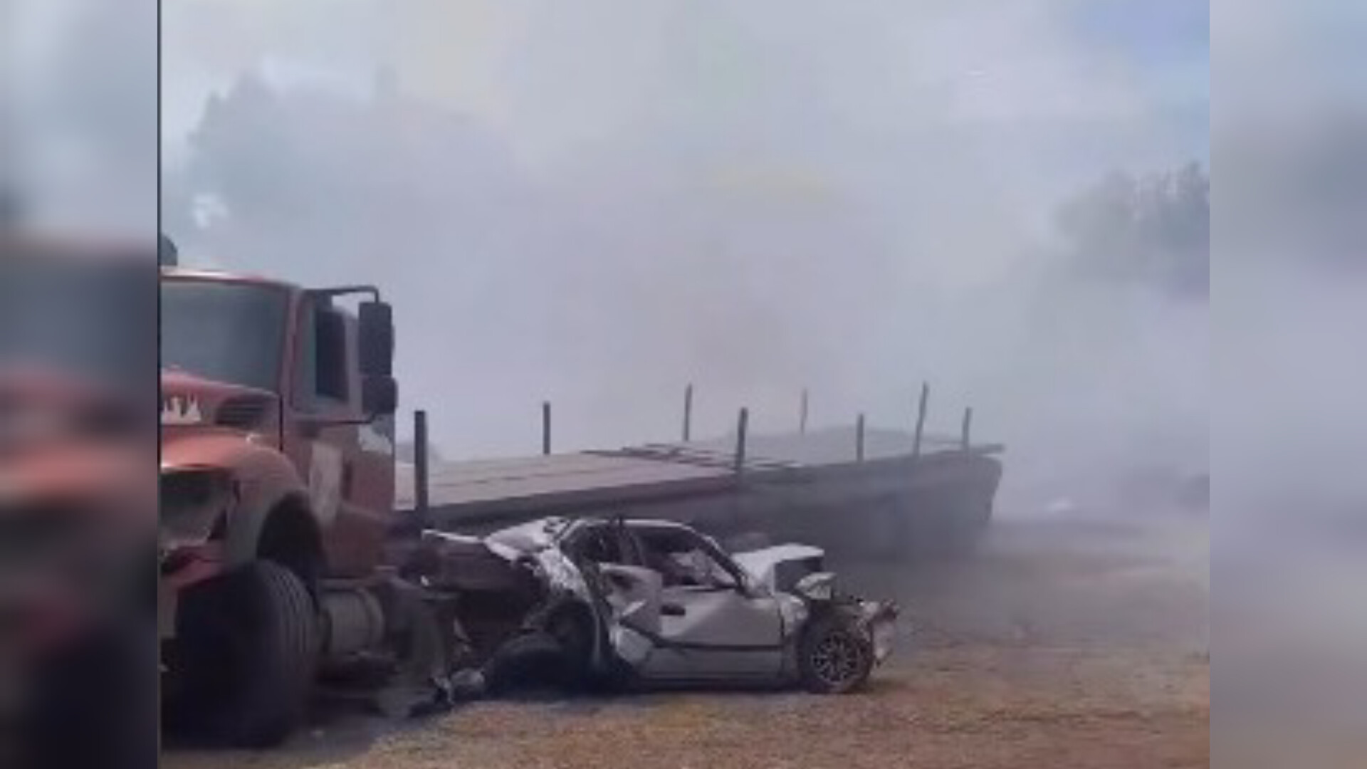 Según la periodista, la colisión múltiple se originó debido a un incendio forestal en las adyacencias de la vía. Debido al denso humo generado por la quema de vegetación, redujo la visibilidad de los conductores, lo que provocó que los automóviles comenzaran a impactar unos contra otros en medio de la calzada.