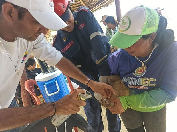 La acción se llevó a cabo en atención a un alerta sobre el avistamiento del animal con dificultades de movilidad, hecho por los habitantes de la parroquia Patanemo, para lo cual se conformó una delegación entre personal de Diversidad Biológica del Ministerio del Poder Popular para el Ecosocialismo (Minec), Bomberos de Puerto Cabello, Policía de los Espacios Acuáticos y Protección Animal de Puerto Cabello.