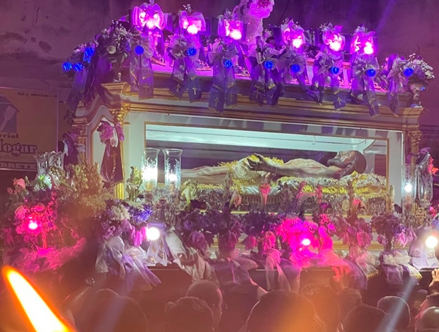 Esta tradición, que tiene más de 200 años de historia, se centra en la imagen del Cristo yacente, una pieza de madera tallada que, según la leyenda local, llegó al pueblo por un “error” providencial en el siglo XVII, ya que se esperaba originalmente una imagen del Nazareno. El esfuerzo físico requerido durante la Procesión, es monumental, considerando que la imagen tiene un peso estimado de entre 1.200 y 1.500 kilos. Para levantarla se necesitan aproximadamente entre 80 y 90 hombres a la vez, que deben trabajar en perfecta sincronía bajo la mesa.