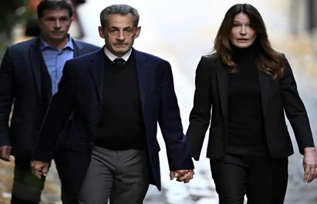 Sarkozy salió sobre las 9.10 horas locales de la mano de su mujer, Carla Bruni, y en compañía de sus hijos y sus hermanos de su domicilio, donde varias decenas de personas se congregaron en muestra de apoyo al exjefe de Estado y le aplaudieron después de cantar la Marsellesa, el himno de Francia.