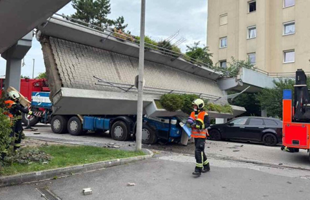 La agencia local APA afirma que el camión se estrelló contra el puente, un paso peatonal elevado, situado en el distrito de Auwiesen de Linz, capital del estado federado de Alta Austria.