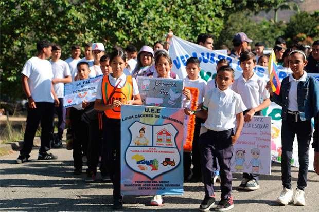 La jornada reunió a más de 245 estudiantes de diversas instituciones educativas del municipio, junto a organismos de seguridad y funcionarios de Protección Civil Revenga, quienes caminaron desde la U.E. Socorro Acosta de Sánchez de Sabaneta hasta el estadio de Santa Rosalía, transmitiendo mensajes de responsabilidad ambiental y cuidado de los espacios naturales.