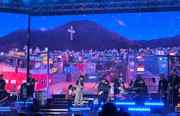 El Segundo acto: vivos irrumpió con un interludio del rapero Budu, quien saludaba a los “secuaces” (el público) desde las pantallas.